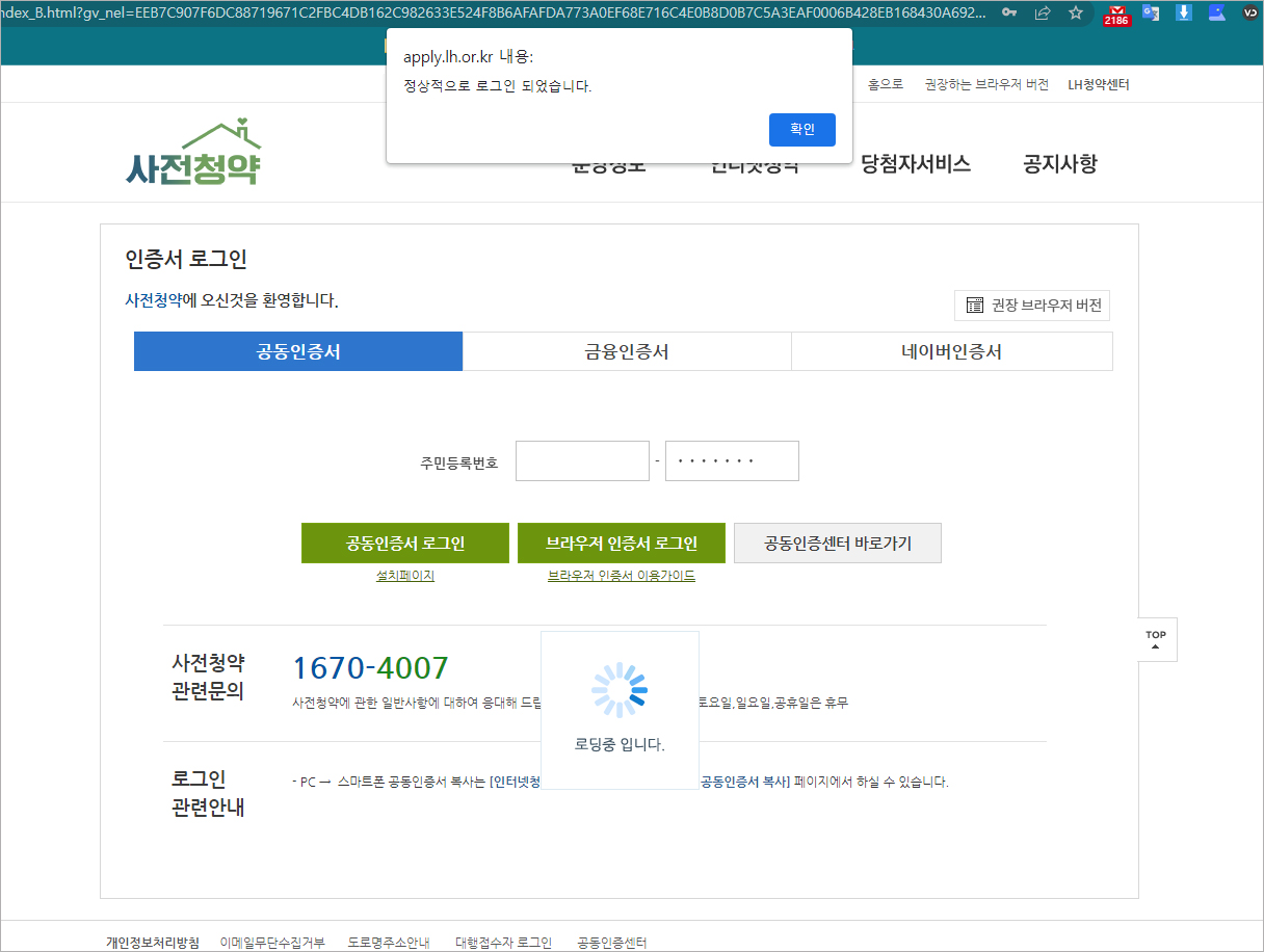 사전청약 혼페이지 인증서는 일반 인증서도 가능하고,