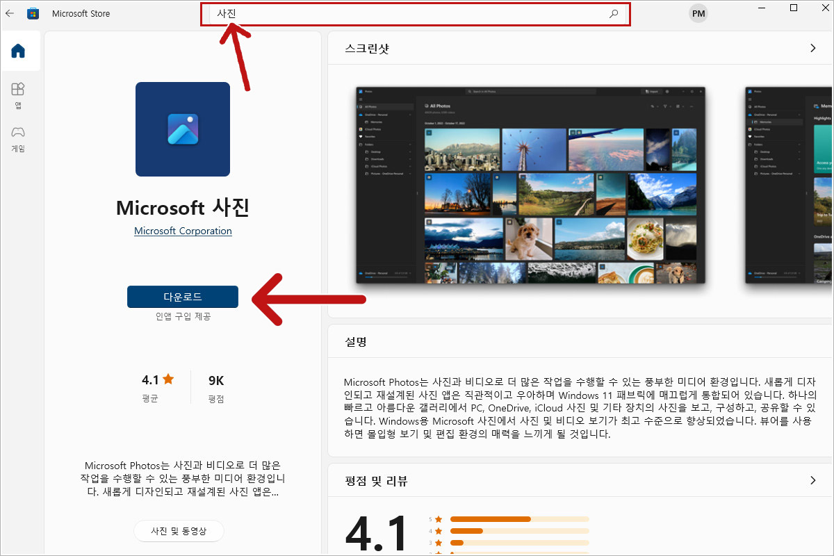 아까 받았던 사진 앱(프로그램)을 실행합니다.