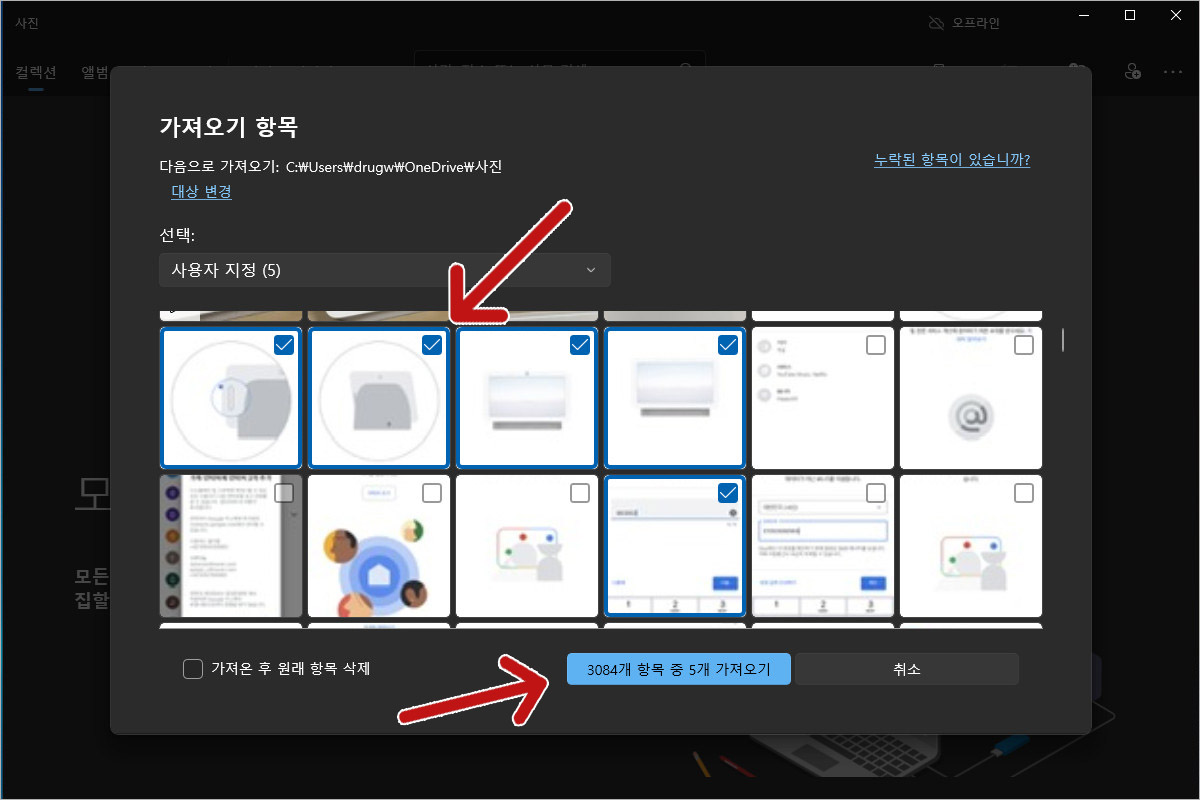 가져올 사진을 선택후 가져오기 버튼을 누릅니다.