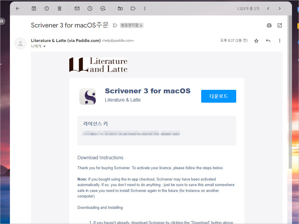 잠시후에 결제시 적어넣었던 이메일을 열어보면,
