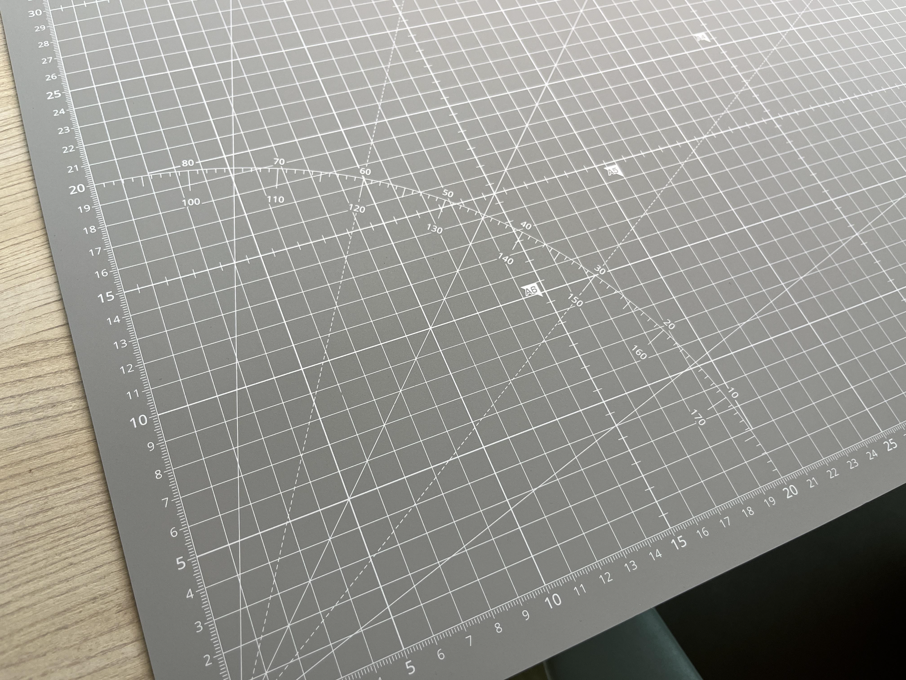뒷면은 회색으로 각도와 각 사이즈별 종이 크기가 표시되어있어 자르거나 그릴때 가이드라인이 되어줄수있을듯하네요~