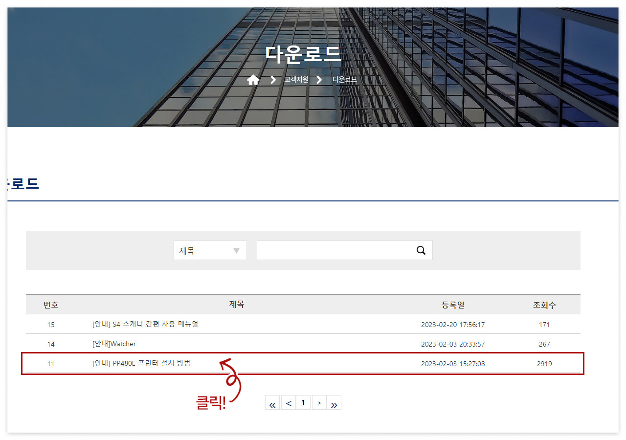 PP480E 프린터 설치방법 게시물을 클릭합니다.
