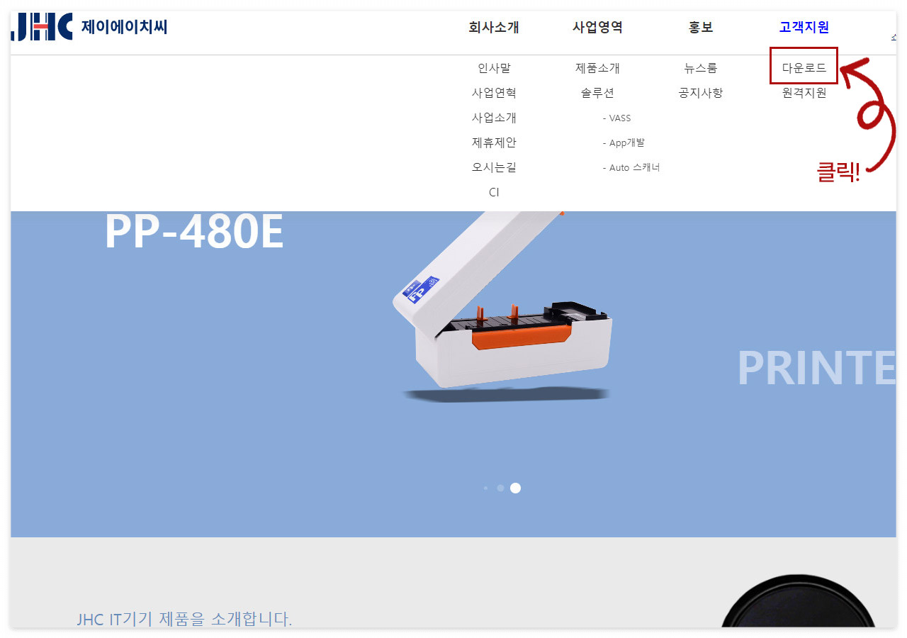 위의 링크를 눌러서 PP480 라벨 프린터 제조사 홈페이지로 갑니다.