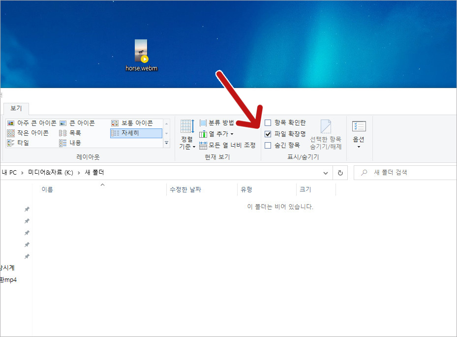 화살표에 파일확장명을 박스체크하시면,